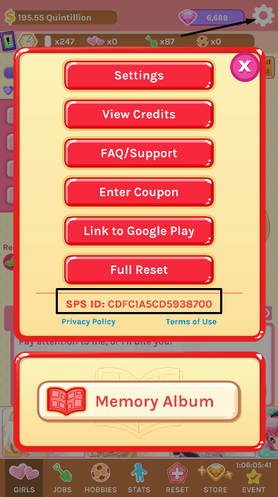 The ID is found on the settings screen, which is opened by tapping the gear at the top right of the game screen.